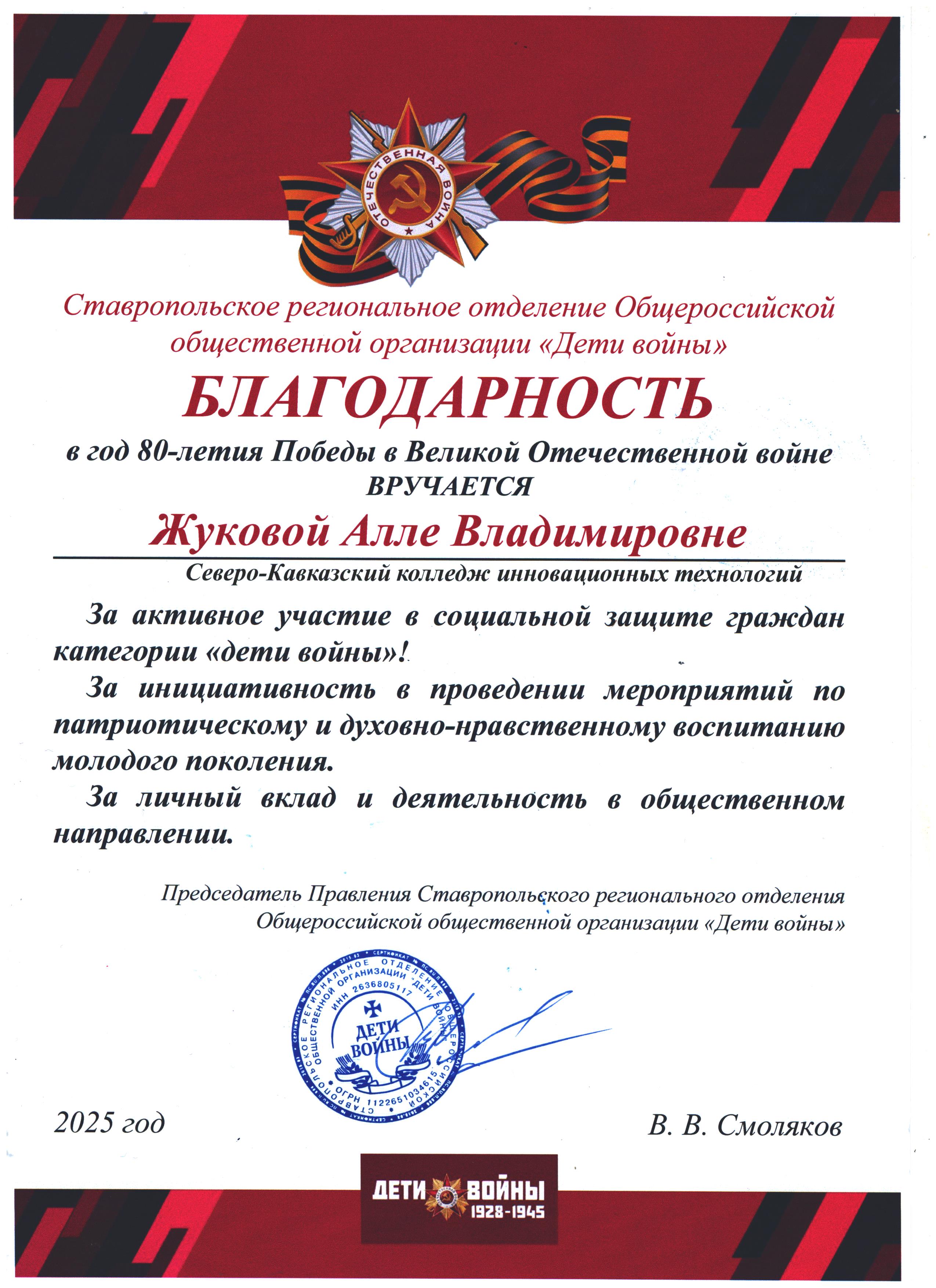 Благодарность СРО "Дети войны"-2025 Благодарность