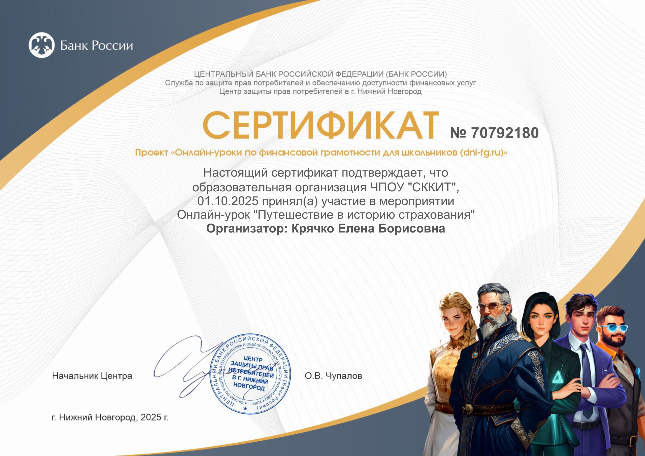 «Северо-Кавказский колледж инновационных технологий» эффективно использует различные способы развития финансовой грамотности: от самостоятельного изучения литературы по финансам и посещения специализированных курсов, до общения с профессиональными финансовыми консультантами. Одним из таких консультантов является Банк России.