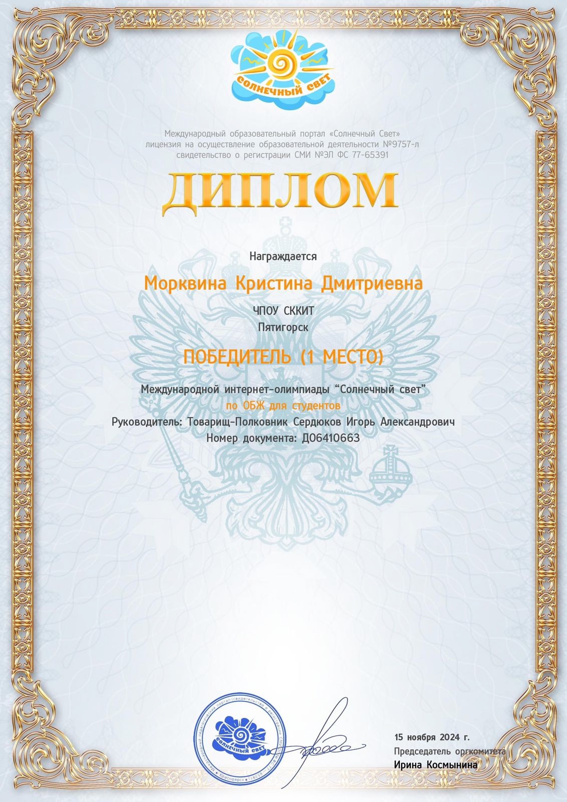 15 ноября 2024г. в рамках дисциплины ОБЗР студенты «Северо-Кавказского колледжа инновационных технологий» приняли участие во Всероссийской олимпиаде. По результатам мероприятия определены призеры и победители: