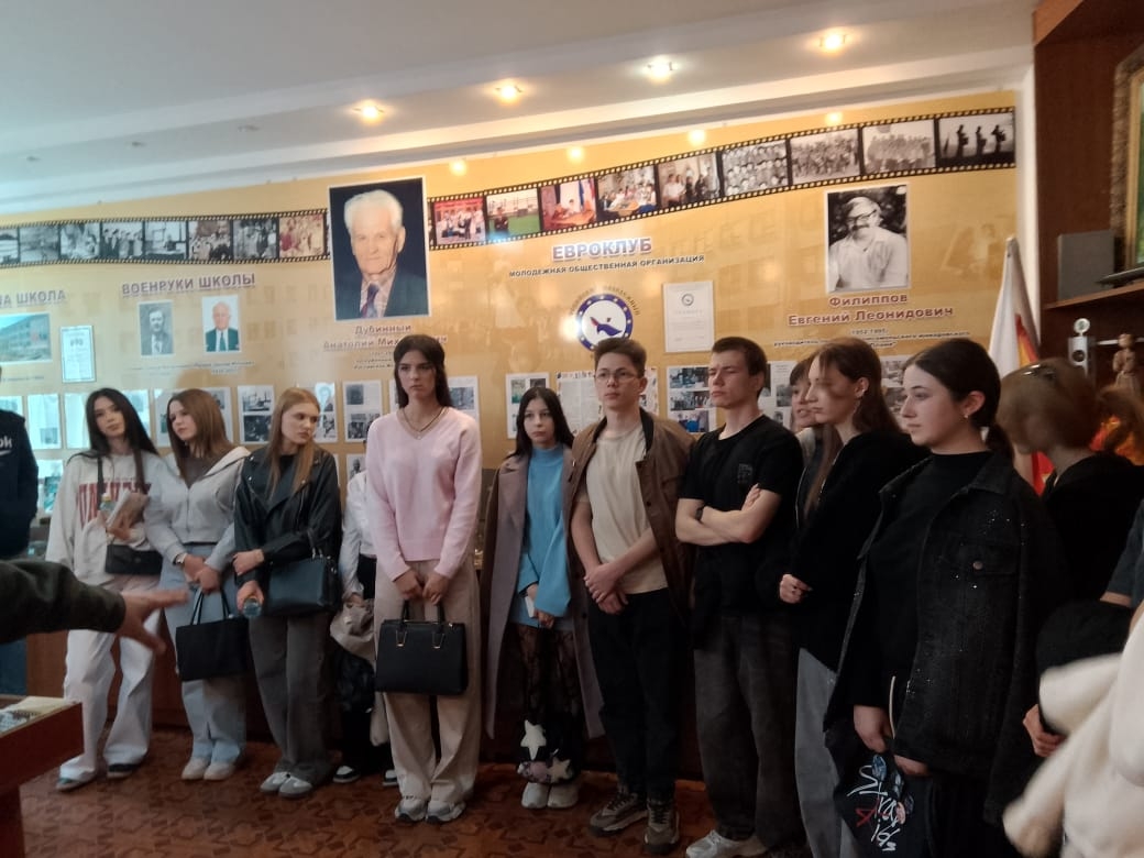 Вот и сегодня в музее состоялся Урок патриотизма. Администратор школы рассказала об истории образования школы, создания музея. Преподаватель ОБЗР полковник в отставке Сердюков Игорь Александрович рассказал об исторических событиях Великой Отечественной войны, мужестве и героизме выпускников школы разных лет при выполнении боевых задач в Афганистане, СВО. Ребята узнали много нового, сами посмотрели документальные факты исторических событий. Такие занятия нужны и важны. Молодежь узнает правду истории, героические страницы мужества и патриотизма.