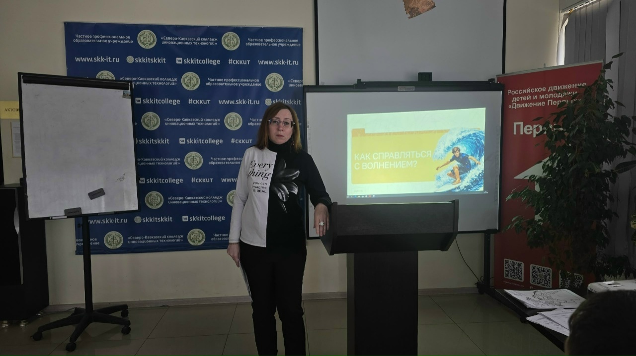 С целью реализации программы воспитания, а также для осмысления обучающимися понятия «волнение»; развития навыков самонаблюдения (рефлексии) и эмоционального интеллекта через освоение конкретных техник саморегуляции для применения в стрессовых ситуациях; формирования осознанного отношения к заботе о своем физическом и психологическом здоровье; мотивации к формированию полезных привычек, 30 марта 2026 в "Северо-Кавказском колледже инновационных технологий" прошли "Разговоры о важном" по теме: "Как справиться с волнением".