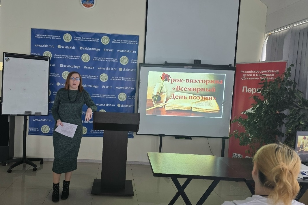 С целью реализации программы воспитания, а также для формирования у обучающихся понимания важности сохранения русского языка; отражения его изменений в условиях развития цифровых технологий; объяснения пользы взаимодействия русского языка и цифровых технологий; объяснения важности изучения языковых норм и правил, 13 апреля 2026 в "Северо-Кавказском колледже инновационных технологий" прошли "Разговоры о важном" по теме: "День поэзии".