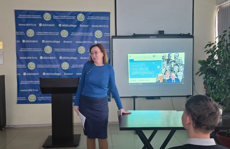 на уважении и ответственности, 09 февраля 2026 в "Северо-Кавказском колледже инновационных технологий" прошли "Разговоры о важном" по теме: "Кто такие дипломаты".